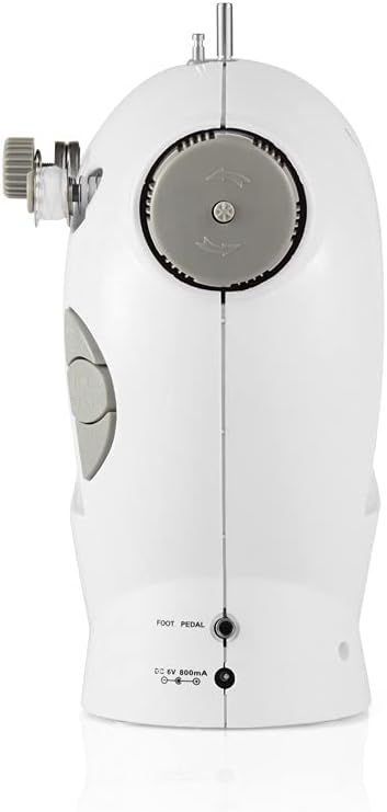 - Weitere Informationen über die Nähmaschine: Abmessungen: 19,5 x 30,3 x 11,5 cm (BxHxT); Gewicht: 670 g; 3 Geschwindigkeiten; 4 Spulen und USB Kabel enthalten; benötigt 4 AA-Batterien, die nicht im Lieferumfang enthalten sind; Stromversorgung: 5-6 VDC.