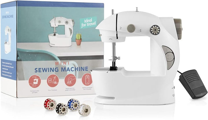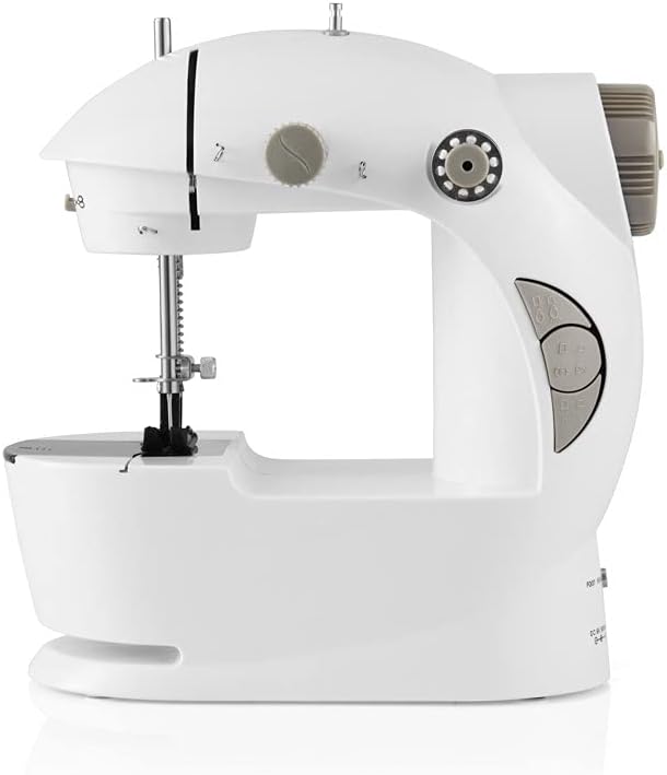 - 3-Gänge-Nähmaschine: Die tragbare Nähmaschine verfügt über 3 verschiedene Geschwindigkeiten zum effizienten Nähen. Es hat auch eine automatische Konfiguration für die Neuverdrahtung und den doppelten Draht. Die Nähmaschine wird mit 4 Spulen in