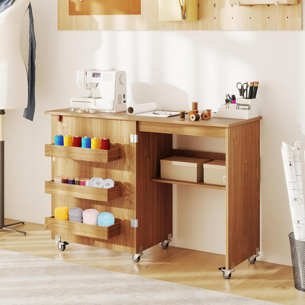 LIFEZEAL Nähmaschinenschrank klappbar, Nähschrank 2 in 1, Schreibtisch Holz mit Haken, Ablage & Roll