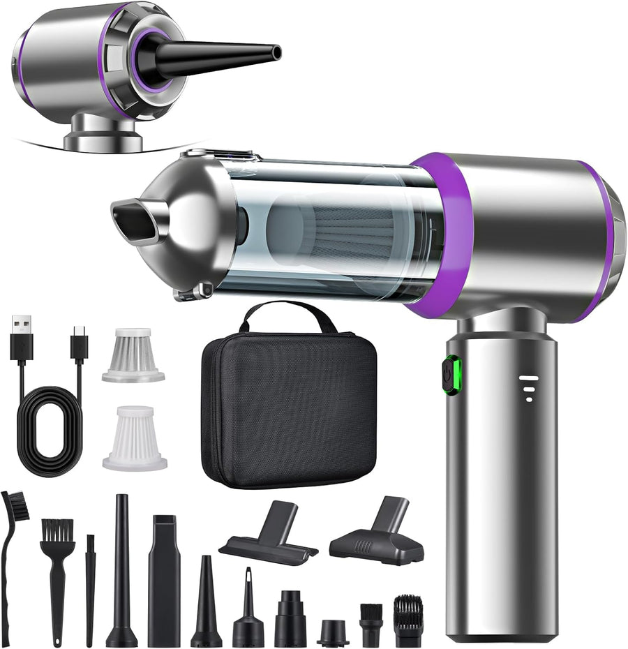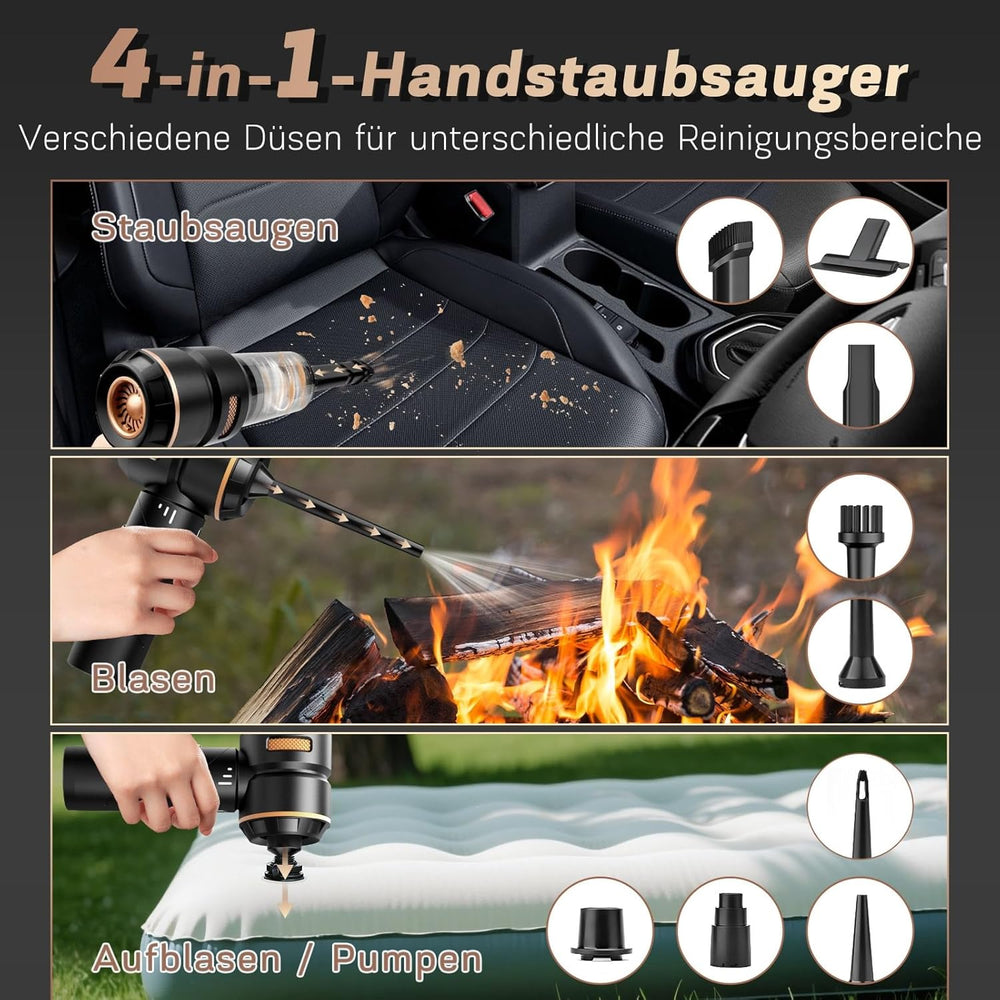 Handstaubsauger, 22000Pa Mini Akku Staubsauger Kabellos 4-in-1 Autostaubsauger mit 8 Aufsätzen, 6000