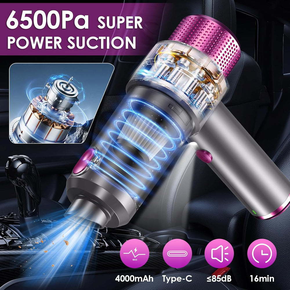 suloea Handstaubsauger Auto Handstaubsauger Kabellos,Akku Auto Staubsauger Stark USB-C Aufladbar,Tra