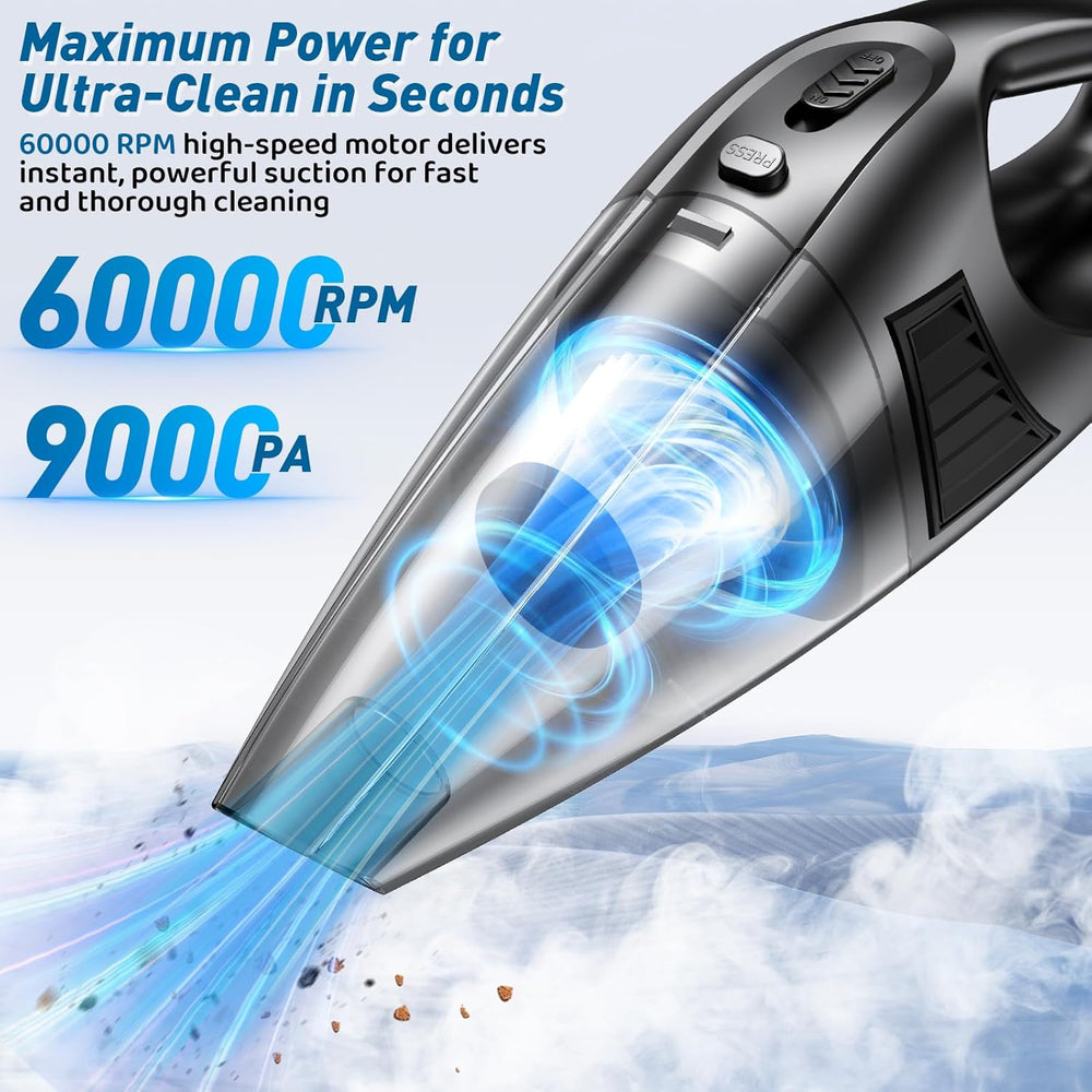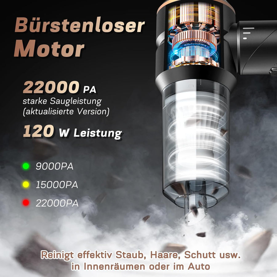 Handstaubsauger Kabellos, Leistungsstarker 120W Handstaubsauger Akku , 60 000 U/min & 9 000 Pa Kraft