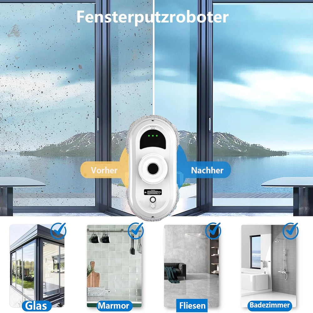 Fensterputzroboter, 5600Pa Elektrischer Fensterreiniger Roboter mit Fernbedienung und Kantenerkennun