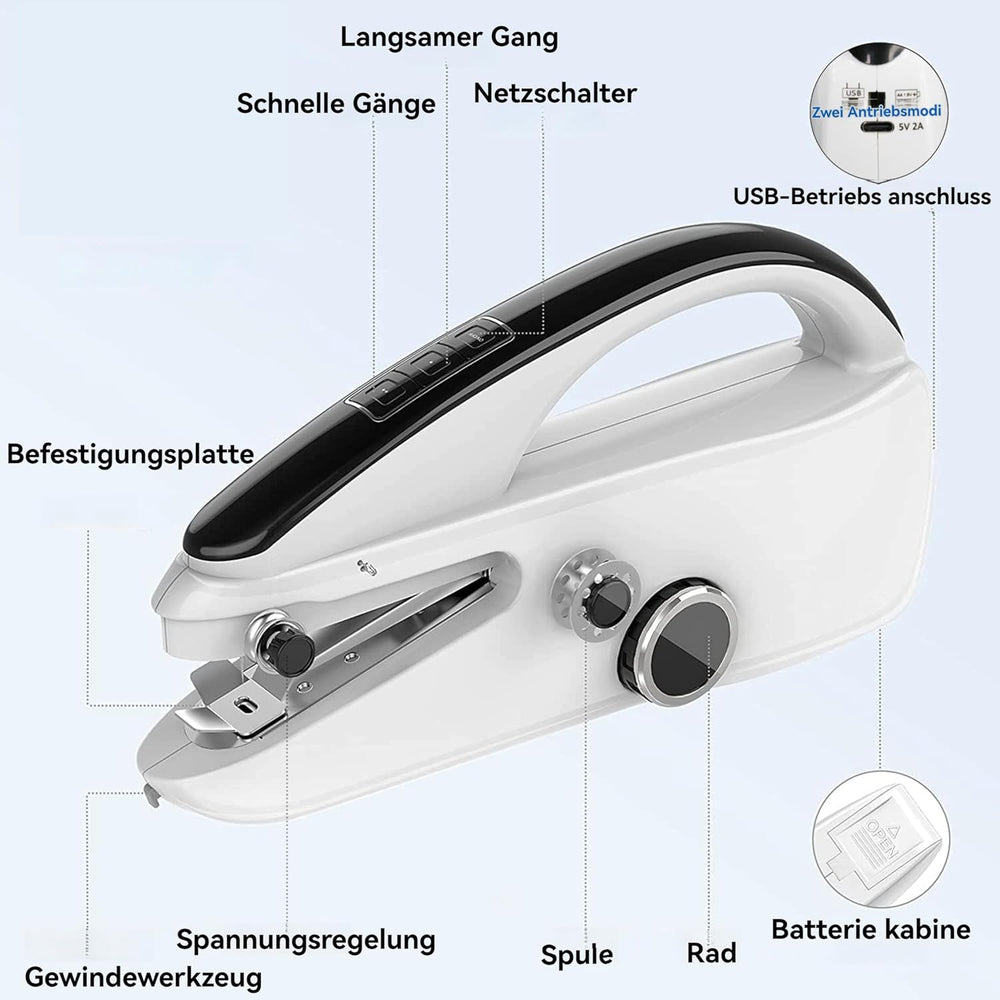 UUE Nähmaschine, 13er Set Handnähmaschine für Anfänger, Handnähmaschine mit 2 Geschwindigkeiten, Str