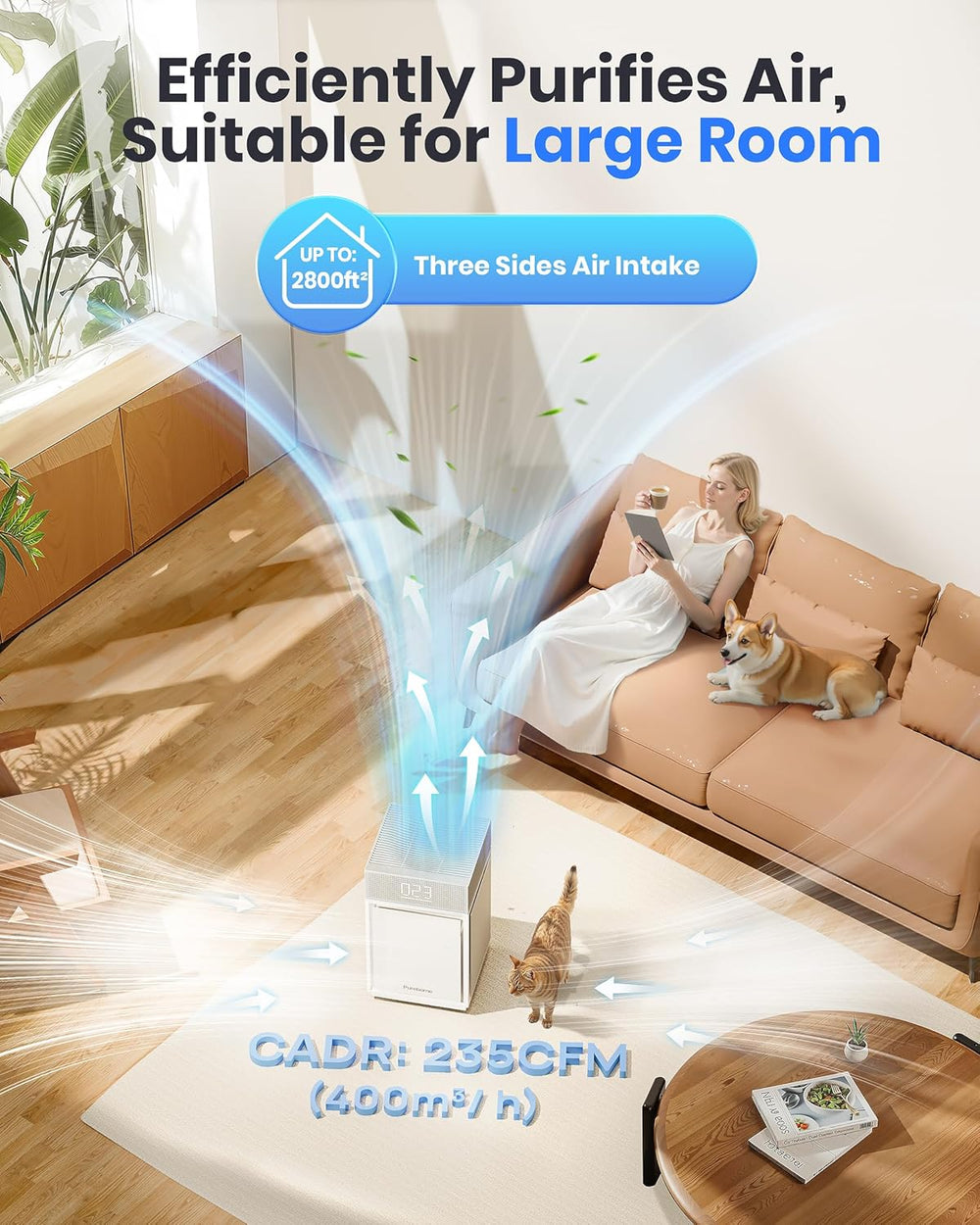 Luftreiniger Allergiker für Schlafzimmer Zuhause, CADR 400m³/h für 260㎡, HEPA Luftfilter gegen Fellg