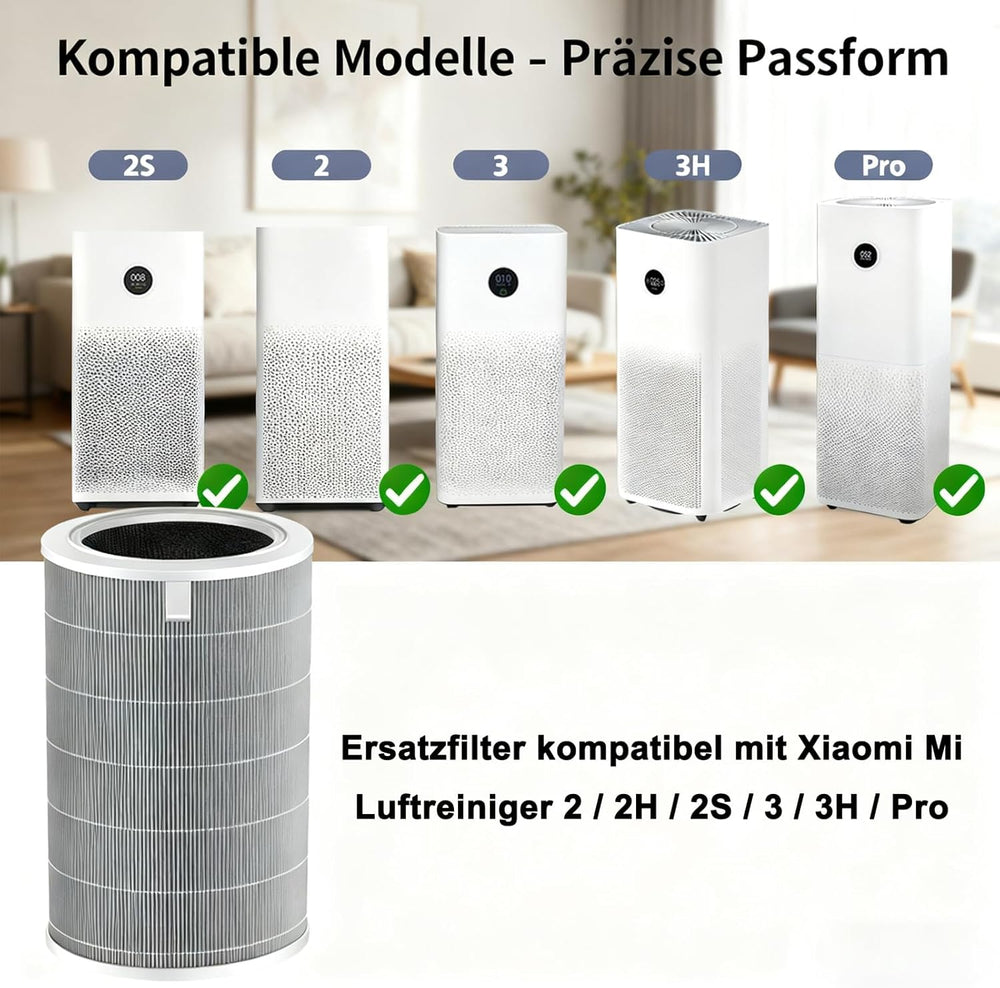 2H Ersatzfilter Kompatibel mit Xiaomi Mi 2 / 2H / 2S / 3 / 3H / Pro Luftreiniger, 3-in-1 Ersatz H13