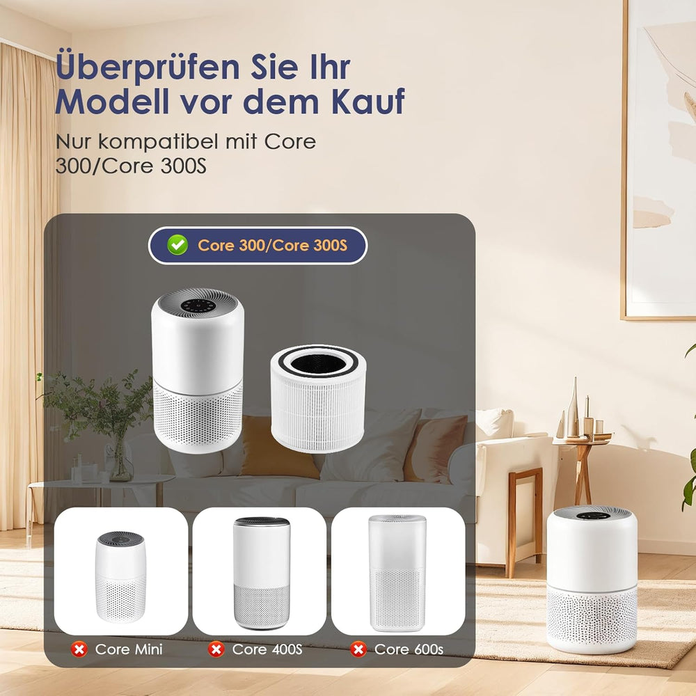 2 Stück Ersatzfilter für LEVOIT Core 300|Core 300S Luftreiniger,3-in-1 H13 HEPA Filter&Hocheffizient