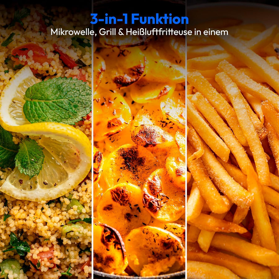 MEDION Mikrowelle mit Grill und Heissluftfritteusenfunktion (25 Liter, 900 Watt, 1.500 Watt Grill, 1
