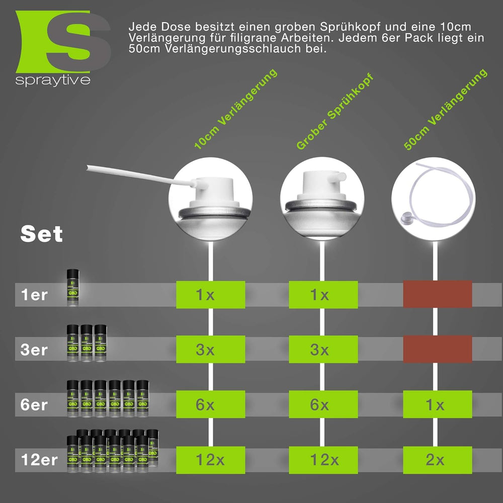 6 x 750ml Spraytive Power Druckluftspray/Druckluftreiniger mit 100mm Sprühverlängerung - PC Reinigun