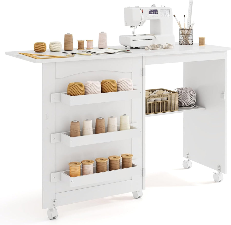 GIANTEX Nähtisch klappbar, Nähmaschinentisch auf Rollen, Nähtisch für Nähmaschine, Nähschrank Holz,