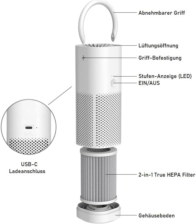 SOUCCESS PORTABLER LUFTREINIGER 7000-2-stufige Luftreinigung (HEPA 13 + Aktivkohle) Reinigen Sie Ihr
