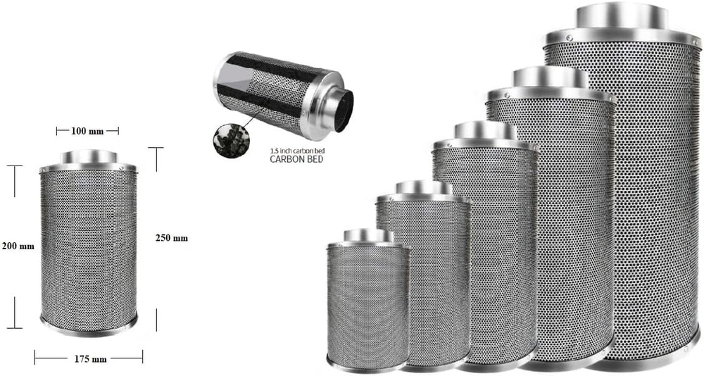 Aktivkohlefilter grow Luftreiniger 100 125 150 200 mm (100 * 200 (bis 200 m3/h)), 100 * 200 (bis 200