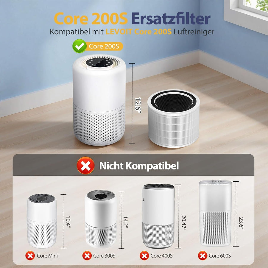 2 Stück Ersatzfilter für LEVOIT Core 200S Luftreiniger -3-in-1 H13-True-HEPA-Filter & Hocheffiziente