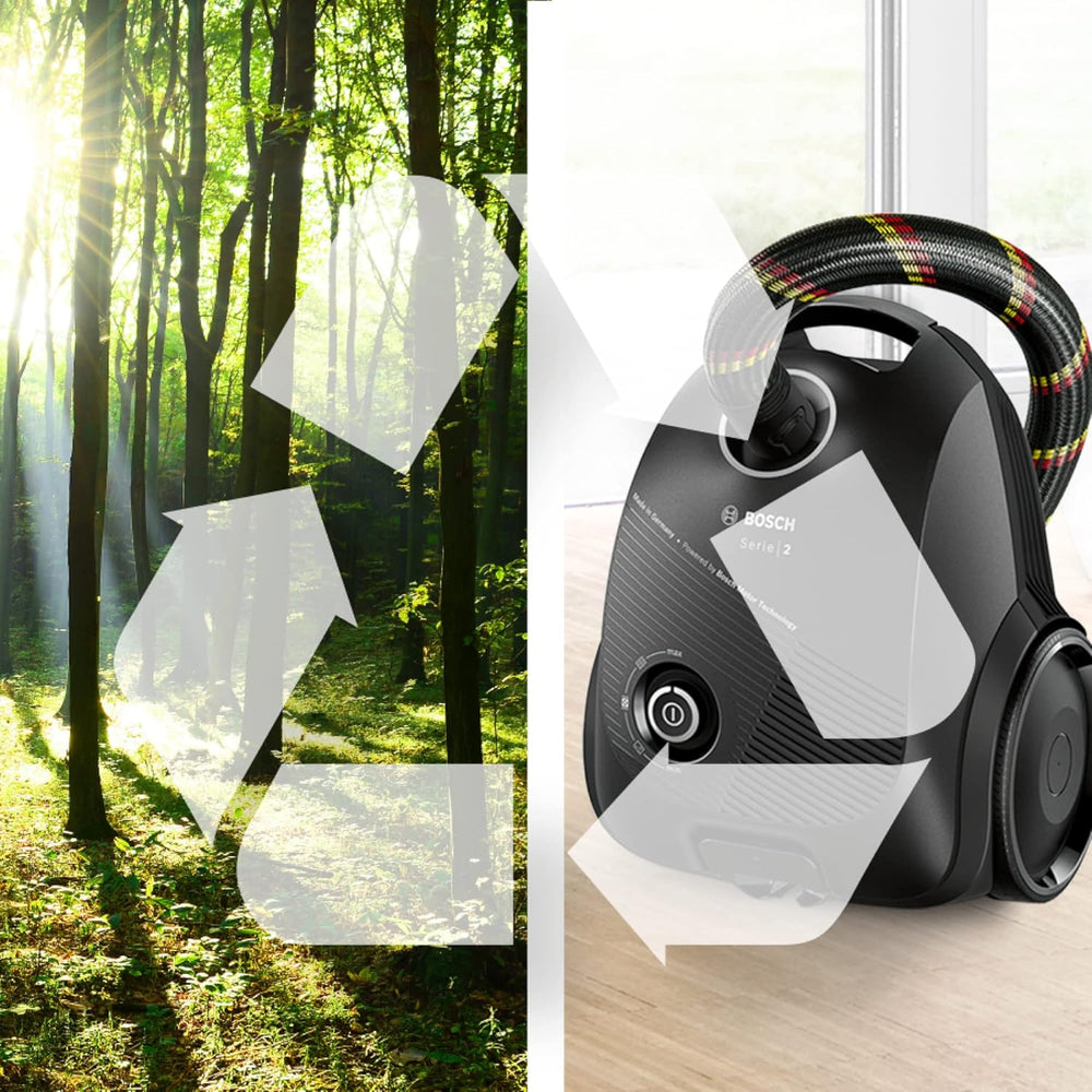 Bosch Staubsauger mit Beutel Serie 2 BGDS2CHAMP, Bodenstaubsauger, nachhaltig, aus Recyclingmaterial