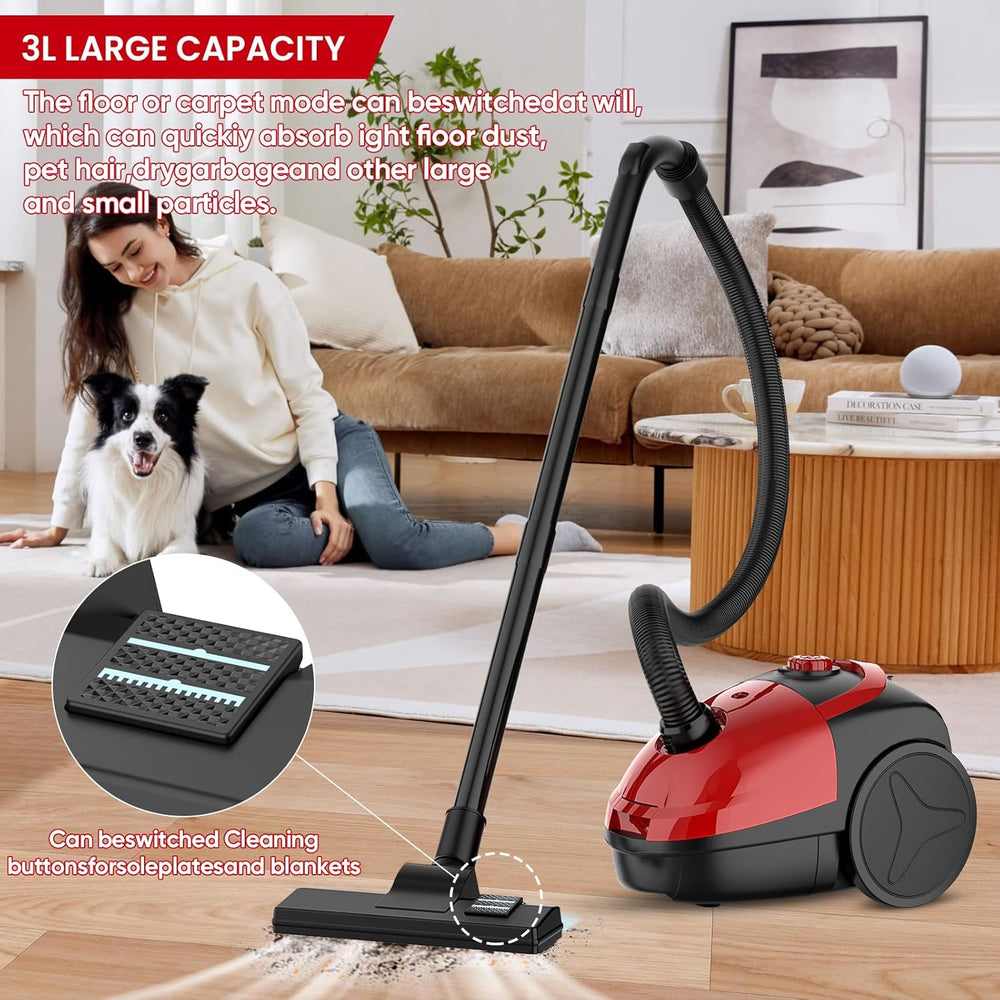 Staubsauger, 2000W Compact Staubsauger mit Beutel, Bodenstaubsauger mit HEPA Filtersystem, 4.5m Akti