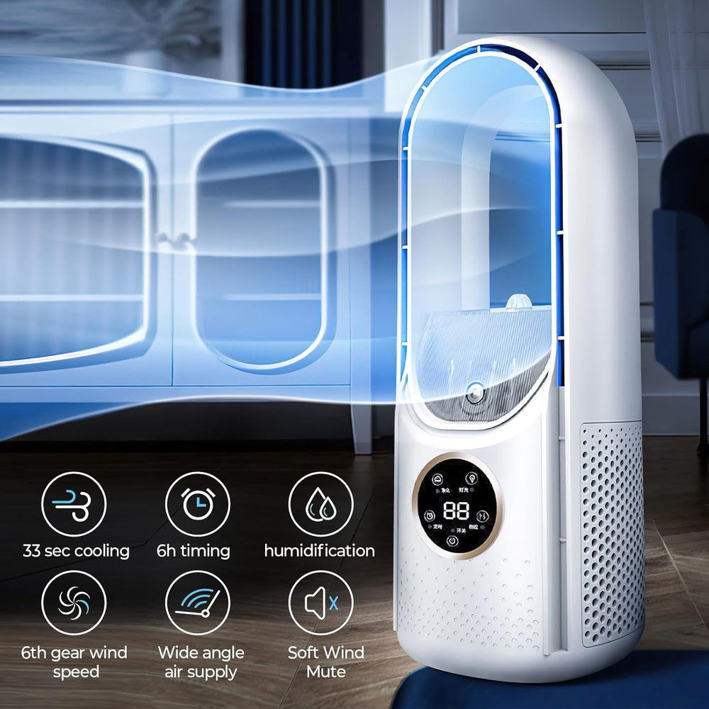 Ventilator Leise, Rotorloser Ventilator mit mit Luftreiniger, 6 Geschwindigkeiten, 9H Timer, USB-Auf