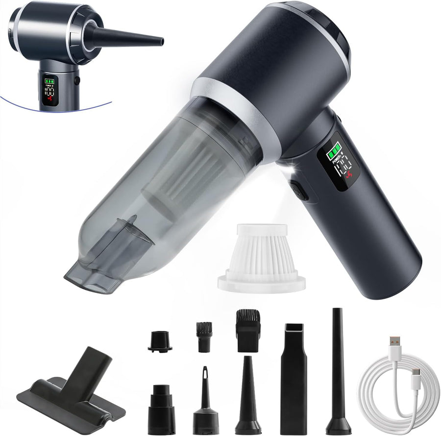 Handstaubsauger Auto, 4-in-1 Handstaubsauger Akku Kabellos, 28000Pa Autostaubsauger, 3-Gang Auto Min