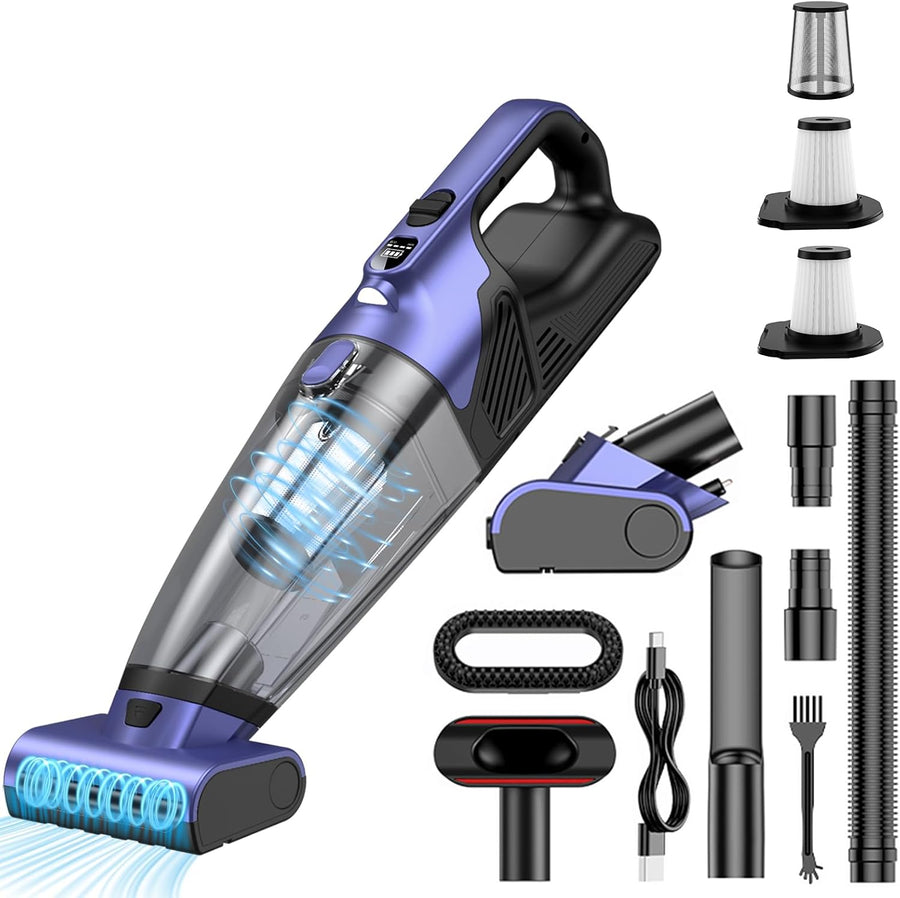 Handstaubsauger Akku mit 10.000Pa Starke Saugkraft,Kabelloser Staubsauger mit HEPA-Filter & Aufsätze