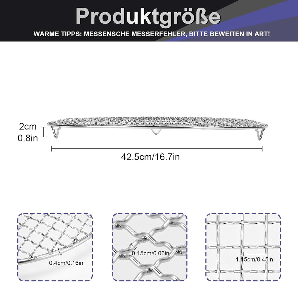 Edelstahl Grillrost Rund Mit 2cm Füssen Ø10-42.5cm - Universelles Kochgitter Für Heissluftfritteusen