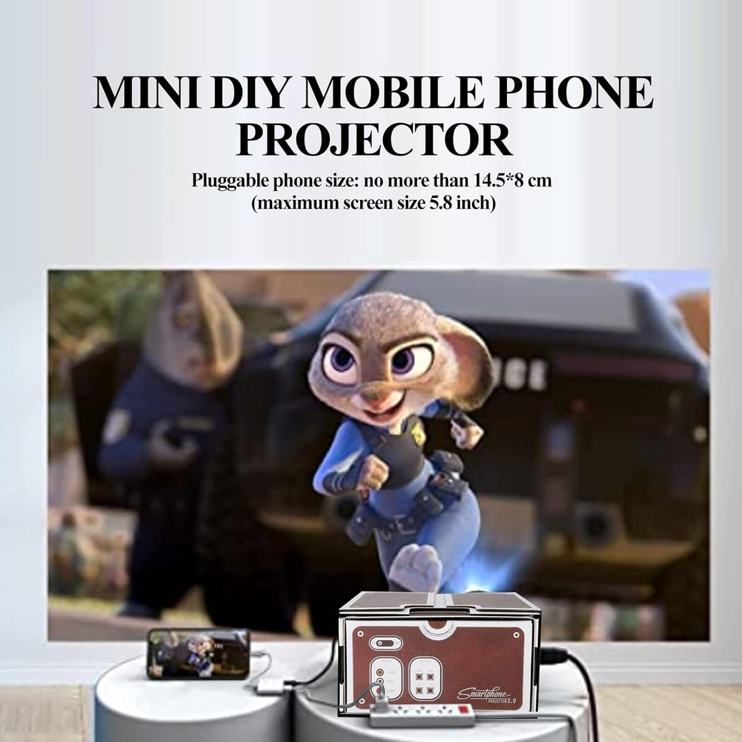 - SmartPhone Projector ist ein hausgemachter Pico-Projektor für Mobiltelefone.Sie können ein auf Ihrem Telefon abgespieltes Video/einen Film mit 8-facher Bildvergrösserung an die Wand projizieren und so zu einem kleinen Heimkino werden.