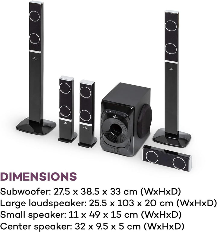 - KINO-ATMOSPHÄRE: Mit dem auna Areal 825 5.1-Heimkino Soundsystem kannst du jederzeit echtes Kino-Feeling im Wohnzimmer geniessen!
