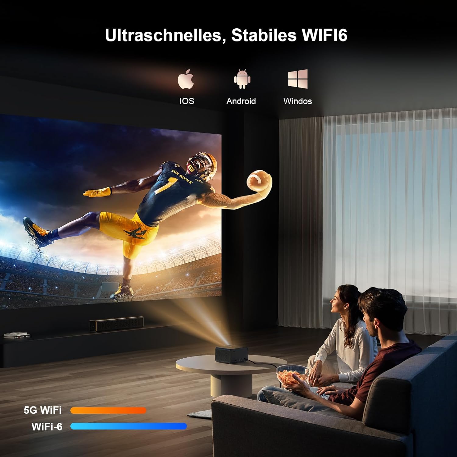 - 【Perfekt für Indoor & Outdoor - Ihr vielseitiger Entertainment-Profi】Der ideale Begleiter für jede Gelegenheit! Ob gemütlicher Filmabend im Wohnzimmer, packendes Public Viewing im Garten oder eine spontane Pool-Party – der mini beamer 4k