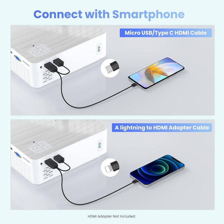 - 【Riesendisplay und Zoomfunktion】 Unser tragbarer beamer bietet Betrachtungsgrössen zwischen 40 und 200 Zoll bei Projektionsentfernungen zwischen 1.5 m und 5.5 m. Mit der praktischen 50 %-Zoomfunktion (nur bei Verwendung von USB) können Sie die