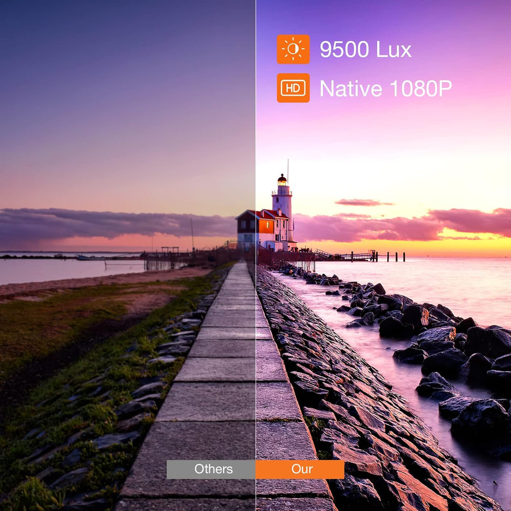 - 【High-Definition-Auflösung】 Unser Video beamer ist mit nativem 1920*1080p ausgestattet und bietet eine hohe Helligkeit von 9500 Lumen, sodass Sie das Beste aus der Kinoansicht bequem von zu Hause aus geniessen können. Es nutzt die