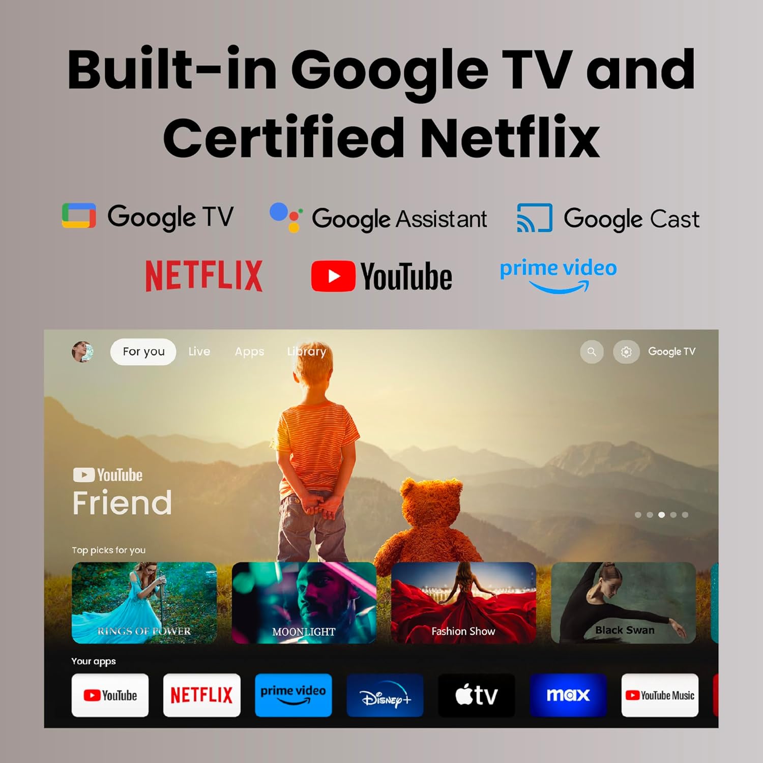 - Vielfältiges Streaming und Gaming: Geniesse Netflix über das integrierte Google TV und erlebe nahtloses Gaming mit ALLM (Auto Low Latency Mode).