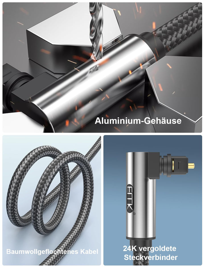 - [Langlebig und Flexibel] Mit einer Baumwollgeflecht-Ummantelung konstruiert, ist dieses optische Kabel zehnmal haltbarer als herkömmliche Plastikkabel und bietet erhöhte Flexibilität und Langlebigkeit für Ihre digitalen Audioanforderungen.