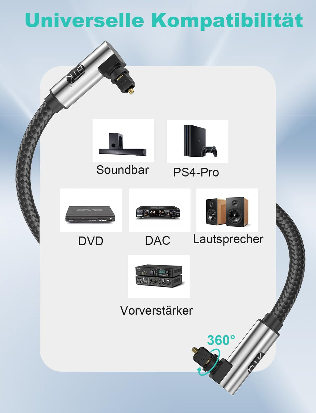 - [Universelle Kompatibilität] Das optische Audiokabel verbindet Audiokomponenten von Blu-ray-Playern, Projektoren, Fernsehern, DVD-Playern. Es passt in standardmässige Toslink (S/PDIF, Optical) Anschlüsse.