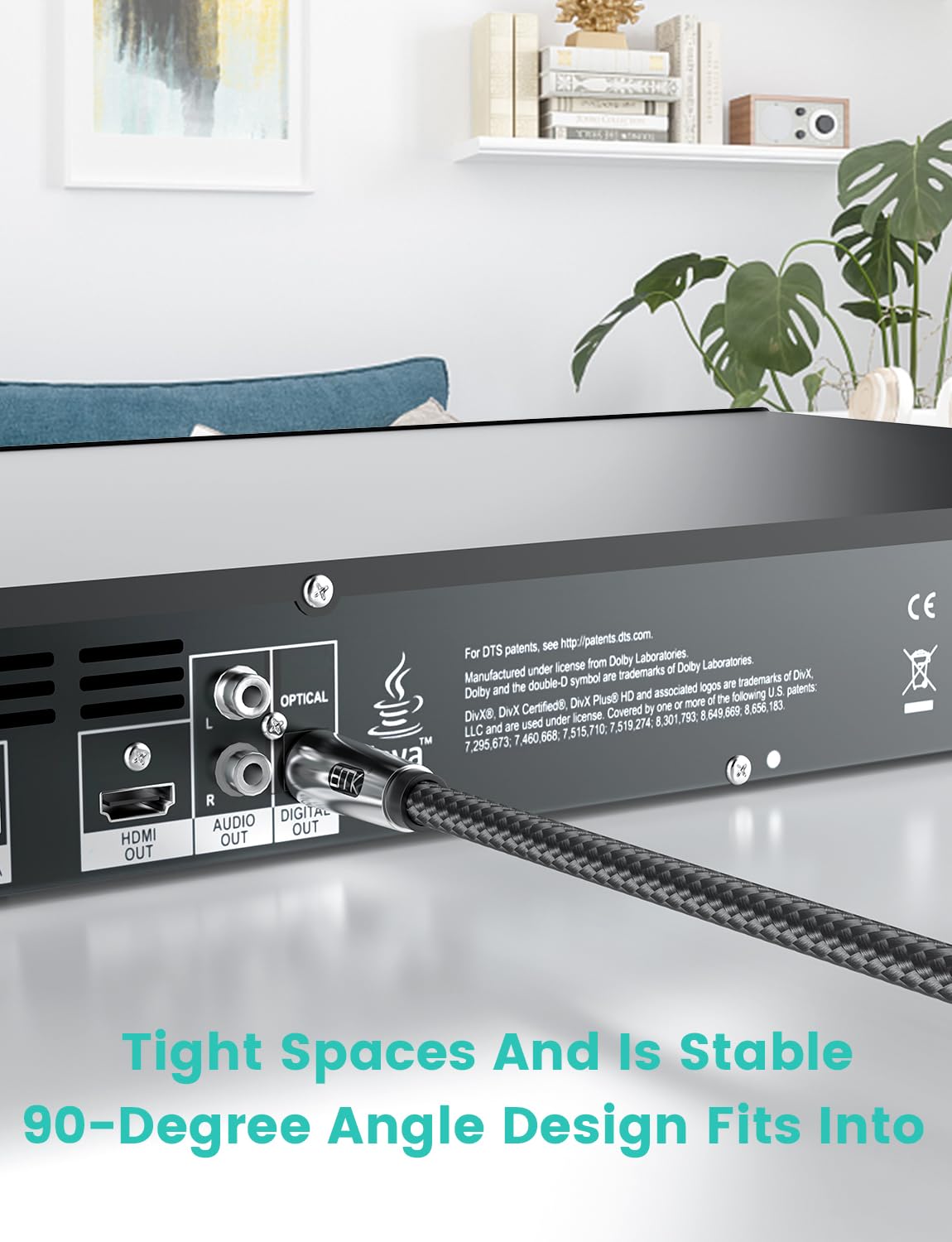 - ⭐[Platzsparendes Design] Das einzigartige 90-Grad-Design macht das optische Audiokabel ideal für wandmontierte Geräte und löst das Problem von begrenztem Platz zwischen Wand und Gerät.