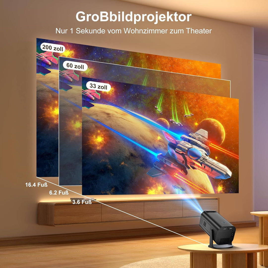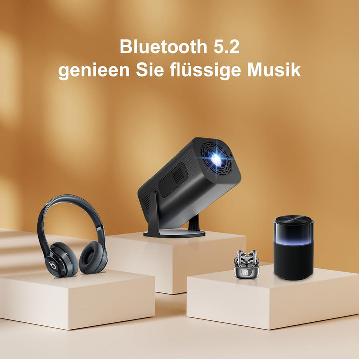 - 【Bluetooth 5.2 & Dolby Sound】 Dieser Projektor ist mit einem Bluetooth 5.2-Chip und integrierten Dolby-Sound-Lautsprechern ausgestattet. Erleben Sie ein umfassendes Stereoerlebnis ohne komplizierte Verkabelung. Schliessen Sie Bluetooth-Kopfhörer an,