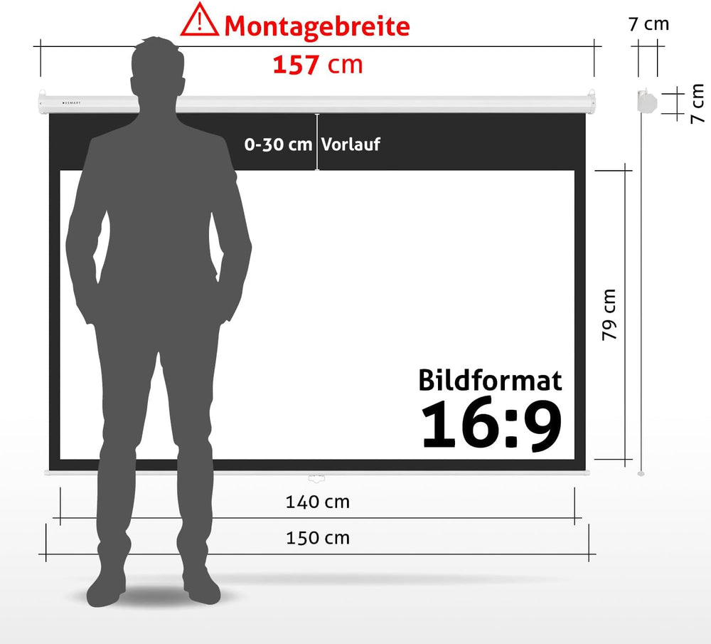 - Darstellungsfläche (B x H): 140 x 79 cm