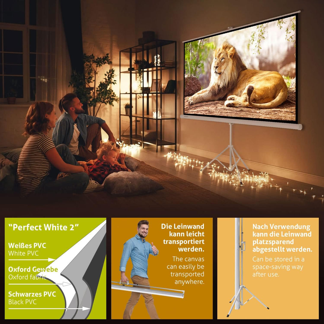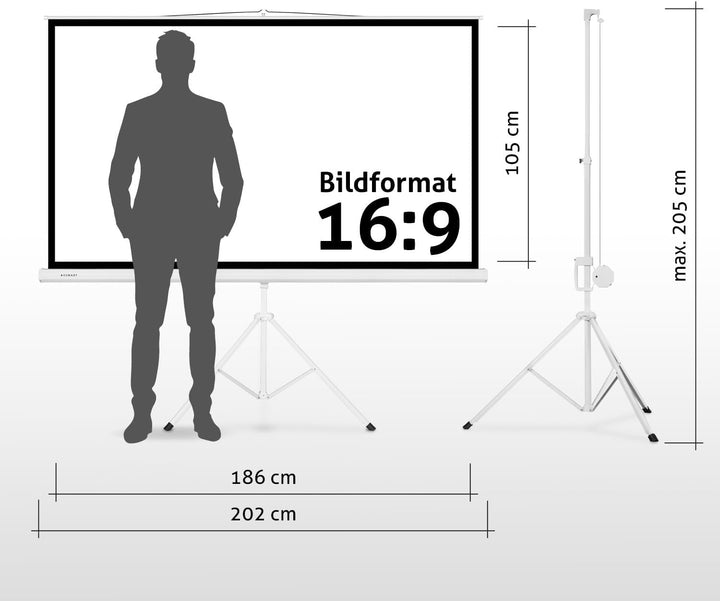 Variante: 186 x 105 cm (84") 16:9 Tuch: Weiss Stativ-Leinwand Professional MISATI Series