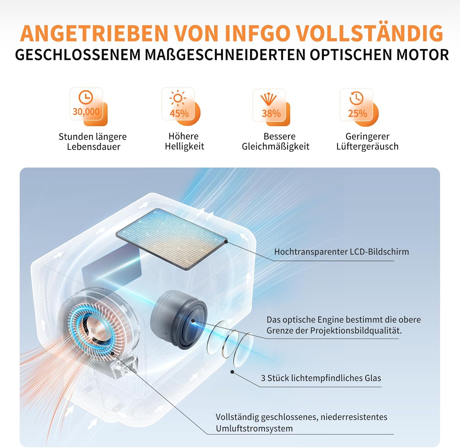 - 360° drehbarer Ständer & Kundenfreundlicher Service: Flexibler Ständer für Projektionen in jede Richtung, ideal für gemütliche Filmabende. Zuverlässiger Kundenservice garantiert sorgenfreies Heimkino-Erlebnis.