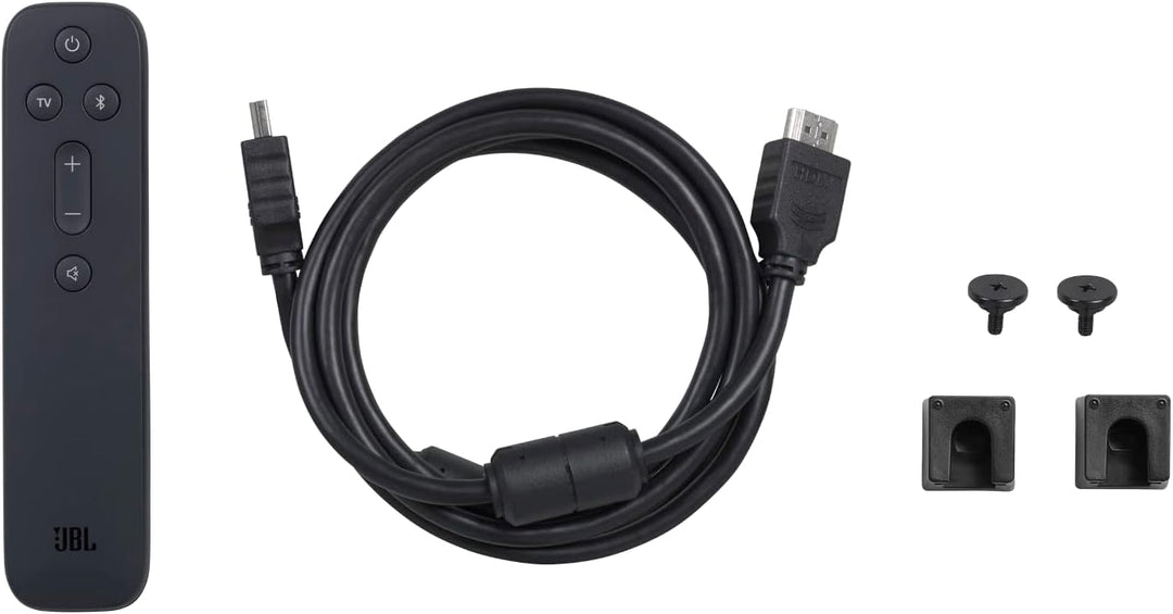 - Lieferumfang: 1 x JBL Soundbar in Schwarz, 1 x kabelloser Subwoofer, 1 x Fernbedienung mit Batterien, 1 x Netzkabel, 1 x HDMI-Kabel, 1 x Wandmontagehalterung, Anleitung und Sicherheitsdatenblatt