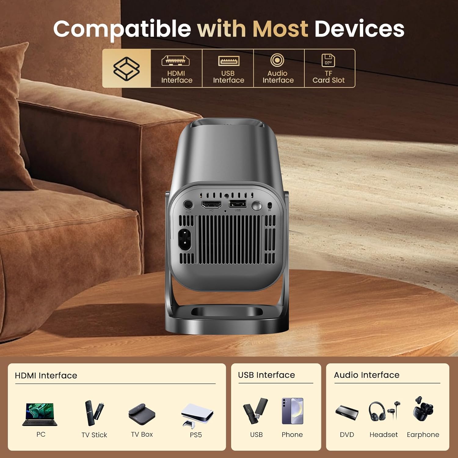 - 🎵【Multi-Device-Verbindungen & Ultraleiser】🎵Portabler Projektor mit HDMI-, USB- und 3,5-mm-Audioanschlüssen,TF-Kartenanschluss. Sie können ihn für Heimkino, Versammlungen, Arbeit und mehr verwenden. Ultraleiser Lüfter (