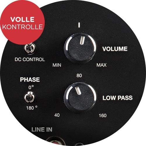 - Universelle Kompatibilität: Verbindung über LFE (ungefi ltert/Tiefpassfi lter deaktiviert) oder Line-Pegel-Stereo-Cinch-Anschluss – Der aktive Subwoofer passt zu jedem Heimkinosystem (Kabel nicht im Lieferumfang enthalten).