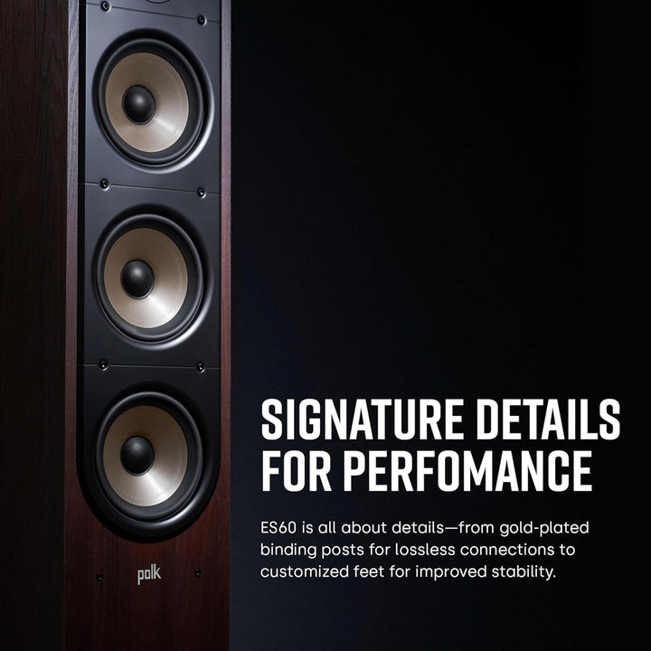 - LAUTE BÄSSE MIT GERINGSTEN VERZERRUNGEN: Das patentierte Power Port-Design von Polk sorgt mit weitläufigerer Oberfläche und gleichmässigerem Luftstrom für mehr Leistung und weniger Verzerrung. In Verbindung mit den drei 6,5-Zoll-Tieftönern des ES60