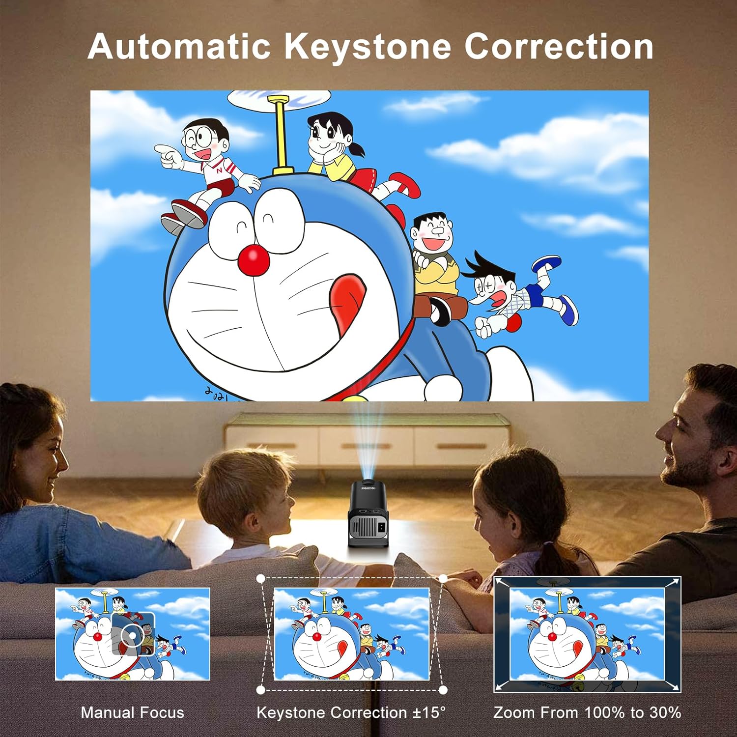 - 【Automatische Trapezkorrektur】Der Salange Projektor kann die Form des Projektionsbildschirms automatisch erkennen und anpassen,um sicherzustellen,dass die Position der Installationsposition,Benutzer müssen die Position des Projektors nicht manuell
