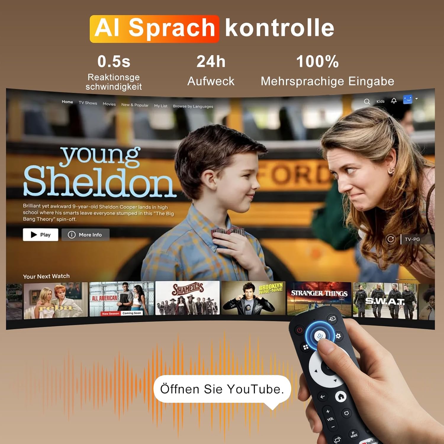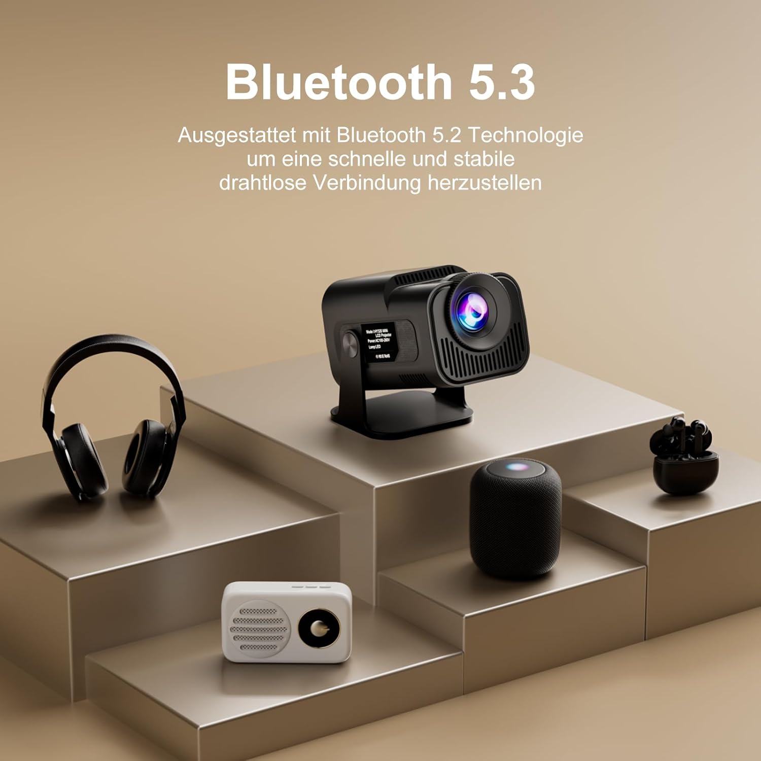 - 【AI Voice Assistant】Nachdem die Fernbedienung mit dem Projektor über Bluetooth gepaart wurde,kann er den Projektor in einem Winkel innerhalb von 10 Metern vollständig steuern,ohne die Fernbedienung des Projektors zu richten.Intelligent interaktive