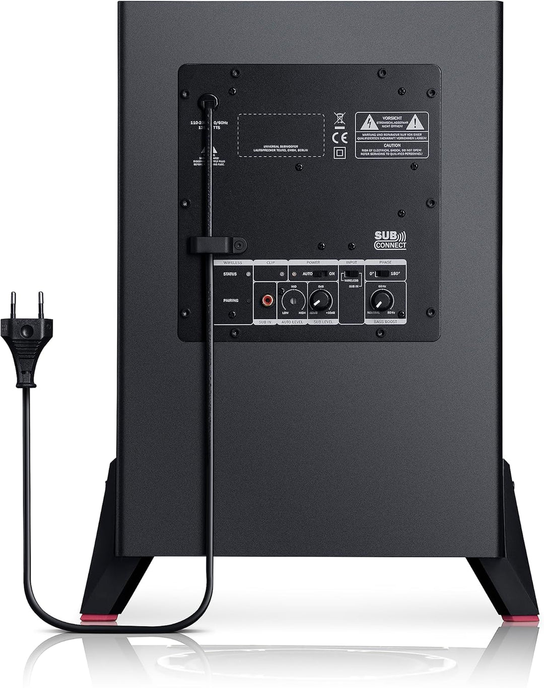 - Starker Subwoofer, wahlweise als Front- oder Downfire-Subwoofer verwendbar, optional kabellos ansteuerbar