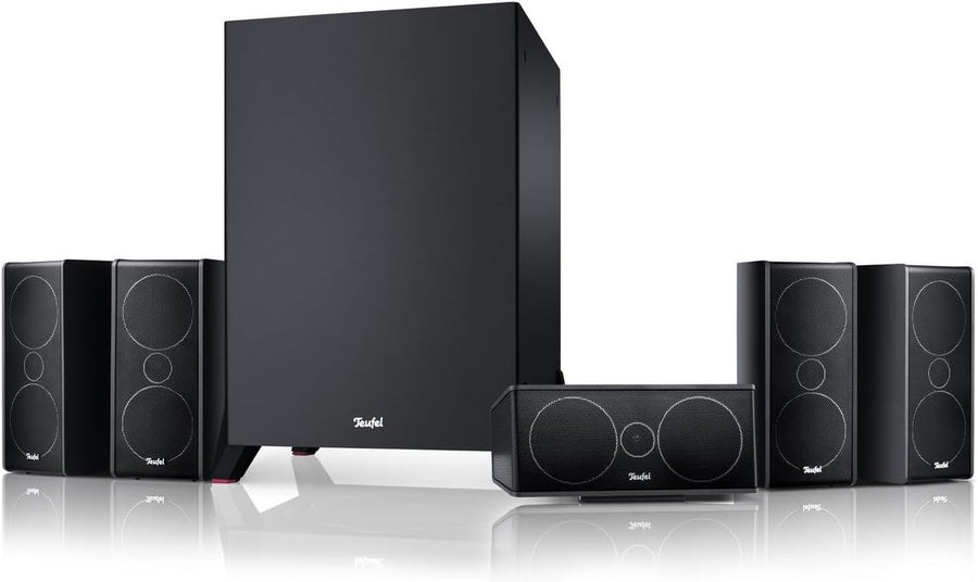 - 5 identische 2-Wege-Boxen mit je 2 Mitteltönern für realistischen, leistungsstarken Raumklang
