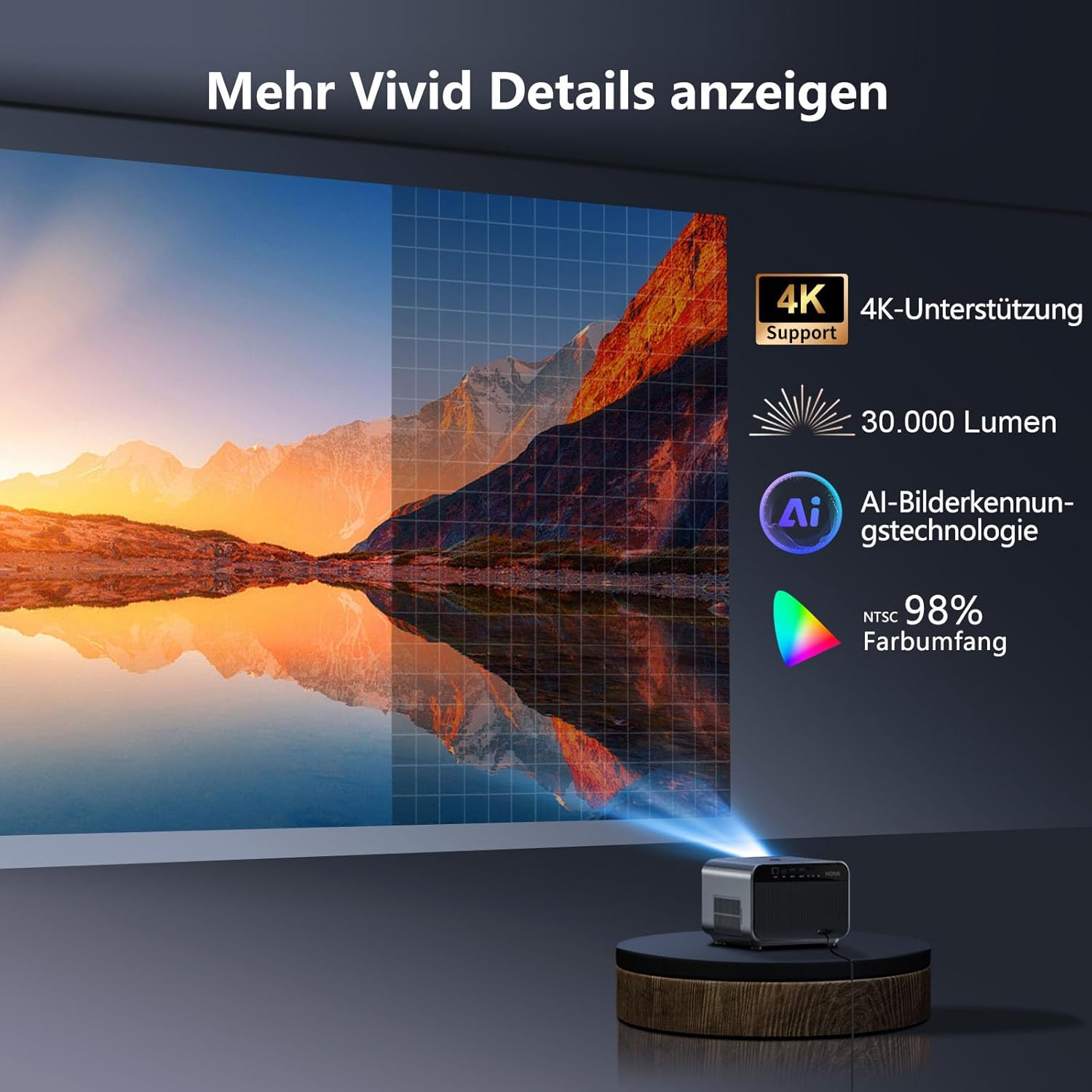 - Natives Full HD 1080p/4K-Unterstützung – Der VGKE 4K Beamer bietet HDR10+/HLG-Technologie für hochdynamische Bildverarbeitung, 1080p HDR-Auflösung und 30.000 Lumen Helligkeit. Er unterstützt ausserdem 4K-Video-Hardware-Dekodierung, sodass Sie