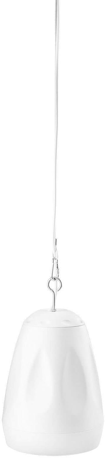- Der Lautsprecher wird mit einem 3 Meter langem Tragseil geliefert, sodass man Ihne von der Decke runter hängen kann, wie eine Lampe. Mit der Abdeckung ist er auch gegen Regentropfen geschützt. Perfekt für den Innen- und Aussenbereich.