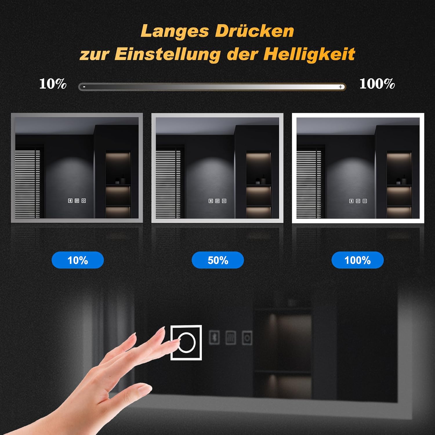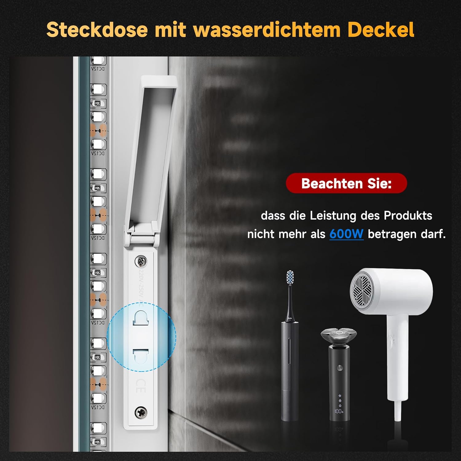 - Beschlagfrei: Sie müssen sich keine Sorgen mehr um den Nebel auf dem Spiegel machen. Der Badezimmerspiegel erwärmt die Spiegeloberfläche, damit der Nebel auf der Spiegeloberfläche verschwindet