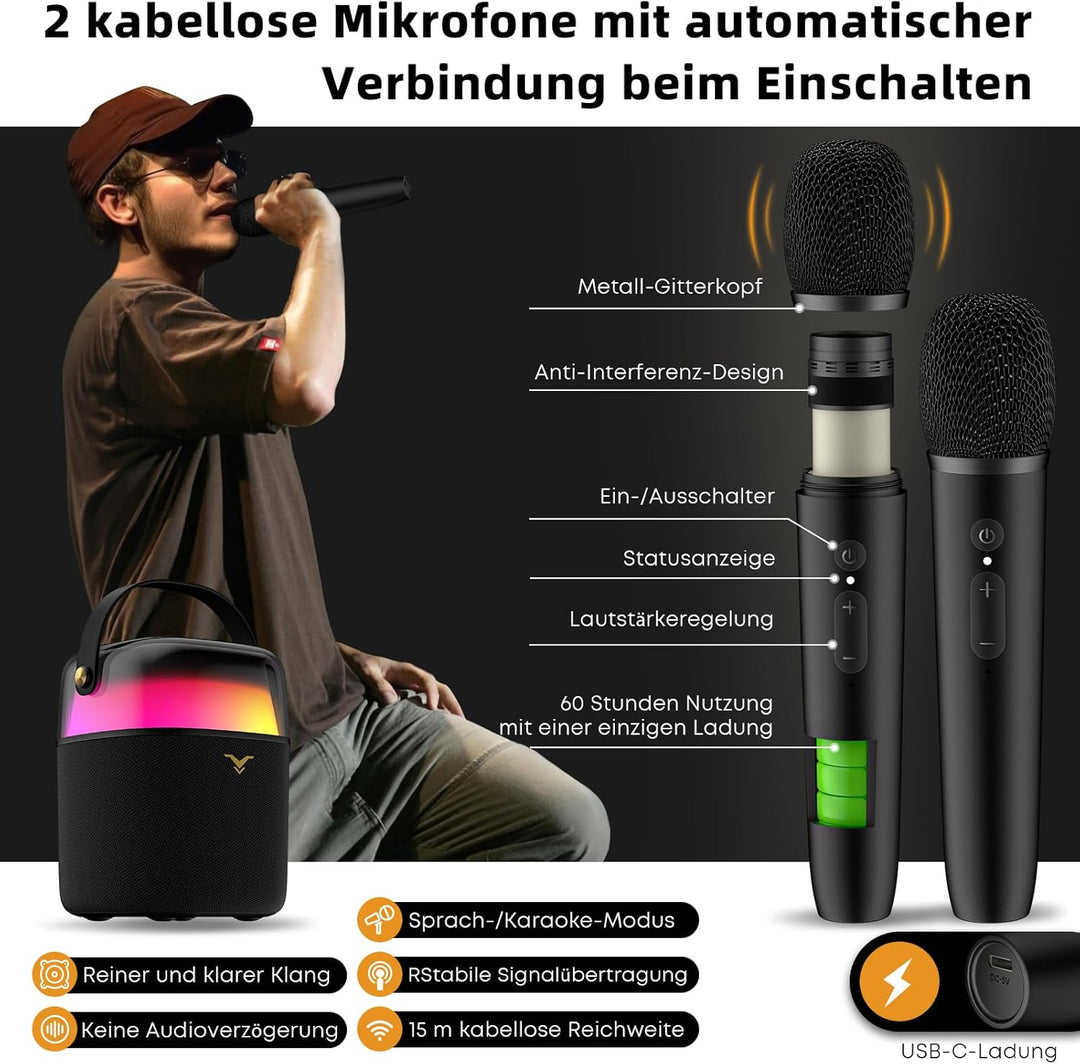 - 【Tolle Geschenkideen】Die Karaoke-Maschine mit zwei Mikrofonen ist das perfekte Geschenk für Kinder, Erwachsene und die ganze Familie und Freunde. Es ist ein hervorragendes Geschenk für Feiertage und besondere Anlässe wie Weihnachten, Ostern,