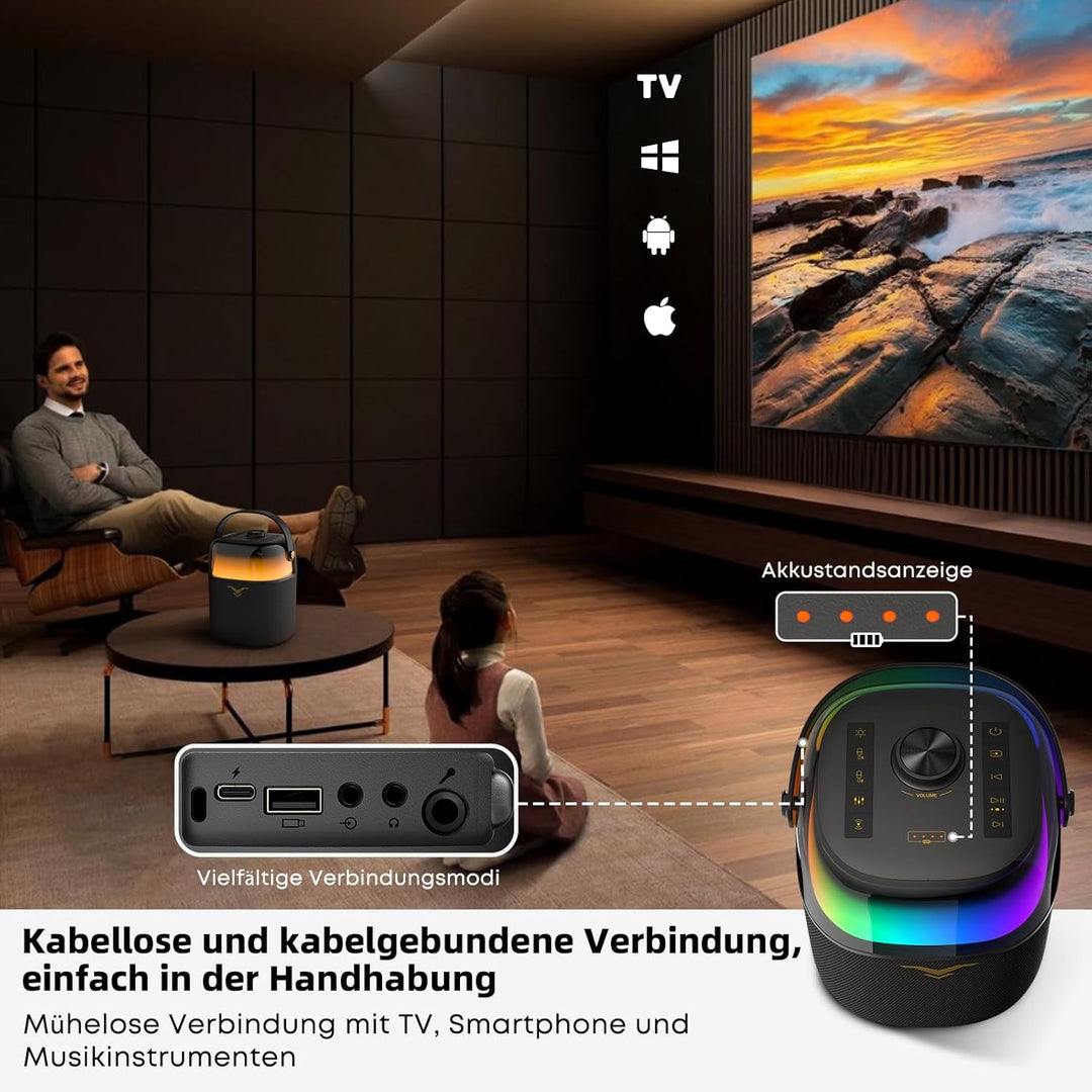 - 【Multifunktionale Karaoke-Maschine】Bringen Sie Ihre Party in 5 Sekunden mit schnellem Setup für viel Spass mit Familie und Freunden zum Leben. Diese Karaoke-Maschine für Erwachsene und Kinder unterstützt Bluetooth, Aux-In und USB-Verbindungen und