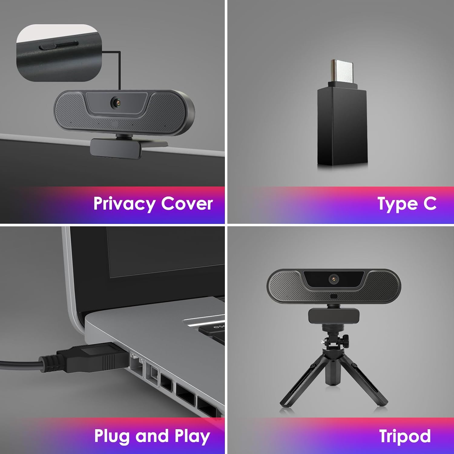 - 【Plug and Play mit Privacy Shutter】Keine zusätzlichen Treiber oder Software erforderlich, Webcam für Mac funktioniert direkt nach der Verbindung mit dem PC über USB 2.0 oder Typ-C Port. Eingebettete Datenschutzabdeckung, die alle möglichen Hacks